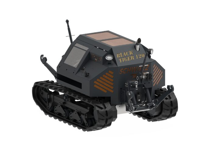 Die Forstraupe „Black Tiger 120“ ist mit ihren 90 KW/122 PS (500 Nm) ein wahres Kraftpaket, das in bis zu 40 Grad geneigtem Terrain für dich arbeitet. Der Antrieb der Anbaugeräte ist über Zapfwelle oder Hydraulik möglich und bietet dir ein 3-Punkt KAT II System mit 2,5 to Hubkraft (vorne und hinten). Zwei getrennte Hydrauliksysteme für Fahrantrieb und Leistungshydraulik sowie bis zu 6 doppelwirkende Steuergeräte stehen dir für die Arbeit mit der Forstraupe zur Verfügung. Mit der Funkfernbedienung bedienst du das 12 km/h schnelle Forstgerät aus sicherer Distanz.
