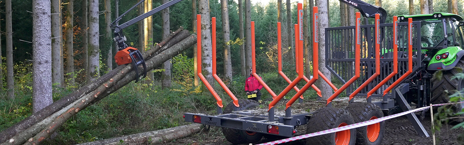 Unsere Rückewagen mit Kran vereinen Qualität und Flexibilität für jeden Einsatz. Sie meistern schwieriges Gelände dank stabilem Fahrgestell und hoher Tragfähigkeit, während die flexible Ladefläche mit Kran und optionalem Greifer oder Reisiggreifer effizientes Arbeiten ermöglichen. Der kompakte Rückeanhänger und unsere Holzgreifer und Reisiggreifer werden von Schwarz in Deutschland gefertigt. Bei der Ausstattung mit Kran setzen wir auf die Qualität des schwedischen Herstellers Palms.